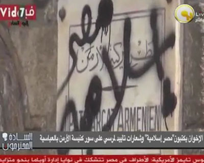 Կահիրեի սուրբ Գրիգոր Լուսավորչի եկեղեցու վրա սեւով գրություն է հայտնվել. "Եգիպտոսն՝ իսլամական"